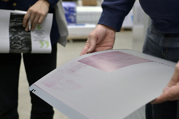 During Reading Week a group of Year 2 Graphic Design students took the opportunity to have a tour and guide through the offset litho process courtesy of Ian Wilcox and his print team at The Print Centre in Southampton. We are lucky at WSA as part University of Southampton to have access to our own in-house commercial printer. Ian generously showed student through the process from pdf. imposition, trapping, and digital proofs to producing colour separation plates and printing the four layers of colour on different stocks. The students were able to see their designed 8pp collated, saddle stitched and trimmed. This was an invaluable experience for any graphic design student /graphic designer to gain knowledge about professional production processes and we hope to return again soon.